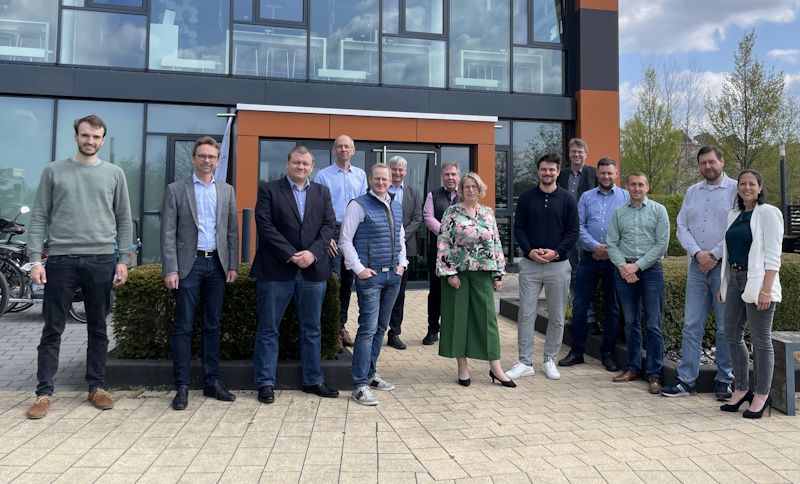 Sie arbeiten gemeinsam an den Technologien von morgen, das USIN5G-Projektteam vor dem ISI-Zentrum der WLH in Buchholz (von links): Mitja Wittersheim (Beagle Systems), Dr.-Ing. Ralf Becker (Geodätisches Institut und Lehrstuhl für Bauinformatik & Geoinformationssysteme, RWTH Aachen), Dipl.-Ing. Jan Grottke (Geodätisches Institut und Lehrstuhl für Bauinformatik & Geoinformationssysteme, RWTH Aachen), Jürgen Caldenhoven (5G-Berater), Olaf Dahl (Eigenbrodt GmbH), Prof. Dr. Ing. Jürgen Bosselmann Hochschule 21, Michael Mack (Computer Mack GmbH), Andrea Dahl (Eigenbrodt GmbH), Dr. Timo Maurer (WLH), Jens Wrede (Geschäftsführer WLH), Andreas Kinski (Drägerwerke), Dr. Nicolas Meier (Leuphana Universität), Konstantin Keunecke (Abteilungsleiter Rettungsdienst Brand- und Katastrophenschutz Landkreis Harburg) und Ana Cristina Bröcking (Stabsstellenleiterin Digitale Infrastruktur Landkreis Harburg).